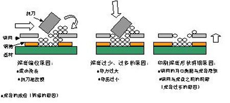 锡膏丝印工艺包括4个主要工序,分别为对位、充填、整平和释放。要把整个工作做好,在基板上有一定的要求。基板需够平,焊盘间尺寸准确和稳定,焊盘的设计应该配合丝印钢网,并有良好的基准点设计来协助自动定位对中,此外基板上的标签油印不能影响丝印部分,基板的设计必需方便丝印机的自动上下板,外型和厚度不能影响丝印时所需要的平整度等。